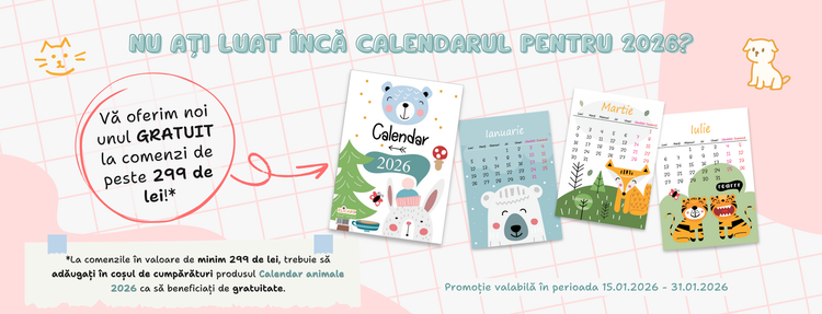Iubești animalele? Care sunt preferatele tale? Nu știi ce să alegi dintre tigrii cei sălbatici, ursuleții pufoși sau iepurașii jucăuși? Nici nu e nevoie! Ți-i prezentăm pe toți, fiecare pe câte o filă a calendarului! Conține 12 file cu lunile anului 2026 + copertă...
